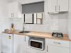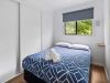 The main bedroom includes a comfortable double bed made up with quality linen and a doona. Extra pillows are available in the wardrobe, which offers ample shelving and hanging space. During the cooler months, spare blankets are also provided to keep you warm.